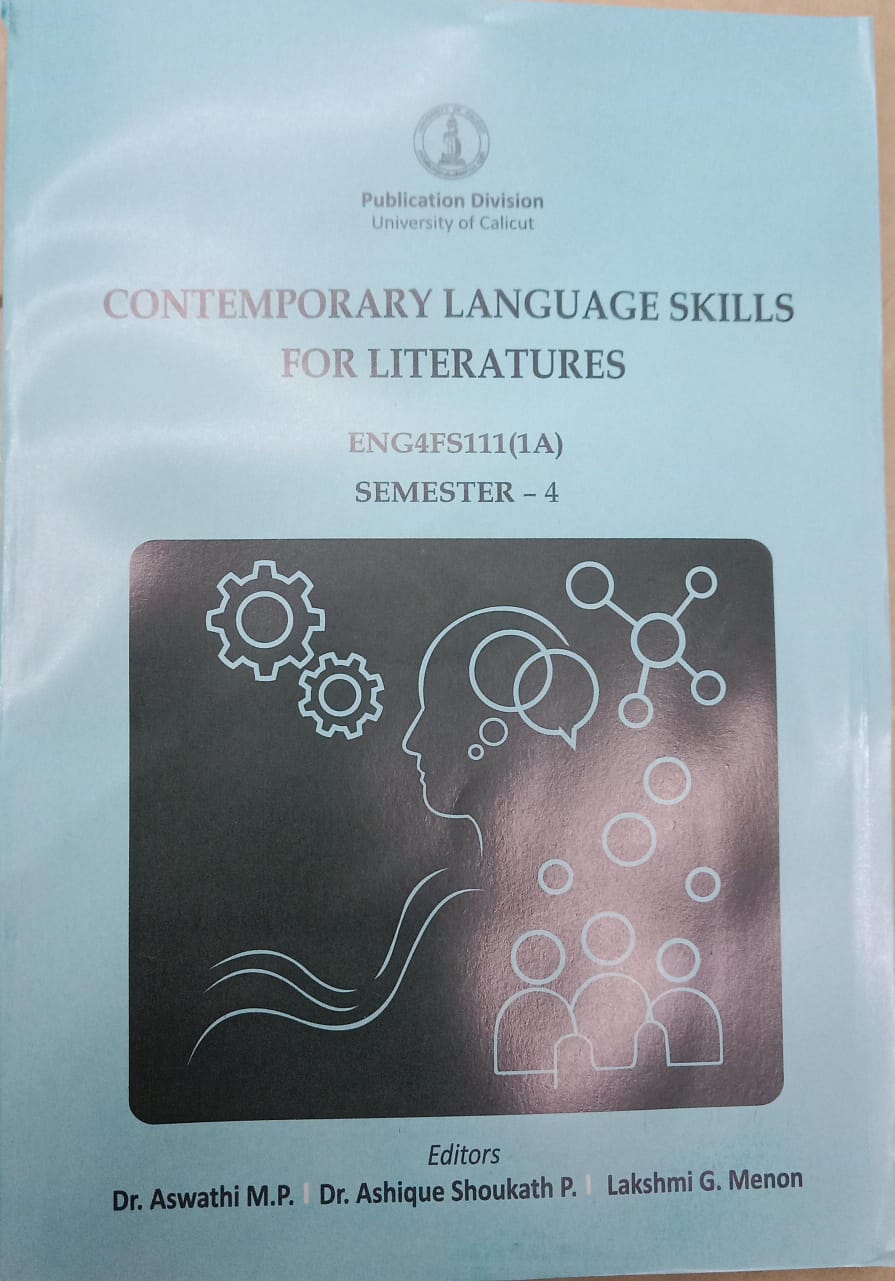 Contemporary Language Skills for Literatures (ENG4FS111(1A)) is a Skill Enhancement Course textbook prescribed by the University of Calicut for the fourth semester of the Four-Year Undergraduate Programme. The book aims to strengthen students’ language and communication skills across academic, creative, and professional contexts. Through carefully selected literary and non-literary texts, interactive activities, and real-world applications, the course develops critical thinking, creative expression, teamwork, and effective communication. Designed to integrate intellectual, social, and emotional learning, the textbook offers a comprehensive and engaging approach to English language education.