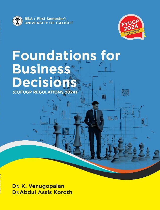 We are happy to present this book, Foundations for Business Decisions, to BBA students.The book aims to help students learn and think more deeply through easy discussions and simple explanations. It follows the latest syllabus of Calicut University for BBA.We have used many well-known books and journals while preparing this book, so we don’t claim full originality. We thank the Calicut University Central Cooperative Stores for publishing it on time.We hope students find this book useful and welcome any suggestions to improve it.