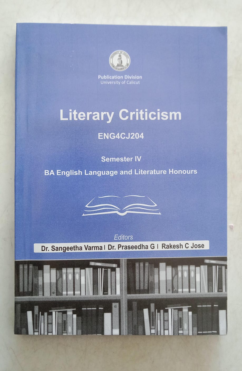Literary Criticism is an introductory textbook for fourth-semester B.A. English Honours students of the University of Calicut. Designed as a clear and accessible guide, it introduces the foundational concepts and major thinkers of literary theory—from classical and Indian aesthetics to Renaissance, Romantic, and New Critical approaches. With simplified explanations, key terms, reflections, and contextual notes, the book helps students build a strong foundation in critical reading and literary analysis.